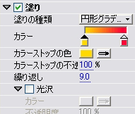 選択した部分だけを編集することもできます。 ![]() 塗り方を変更するには、塗りの種類を選択し、グラデーションの場合はカラーストップの色や位置を編集します。