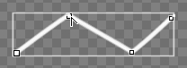 ●ペンツールの使い方● ペンツールには、ペンツールと、アンカーポイントを追加ツールと、アンカーポイントを削除ツールと、アンカーポイントの切り替えツールがあります。 新しくパスを作成する場合にペンツールを使い、ほかのツールはパスの形状を編集するために使用します。 Title Designerのパスは、ベジェ曲線になっています。 ペンツールで画面上をクリックしていくと、直線を描くことができます。
