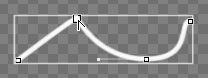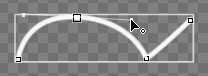クリックアンドドラッグしながら書いていくと、カーブになります。アンカーポイントから出たハンドルで、カーブの形状を編集します。 ![]() 直線を曲線に変更するには、アンカーポイントの切り替えツールで、アンカーポイントからドラッグアンドドロップし、ハンドルを出します。